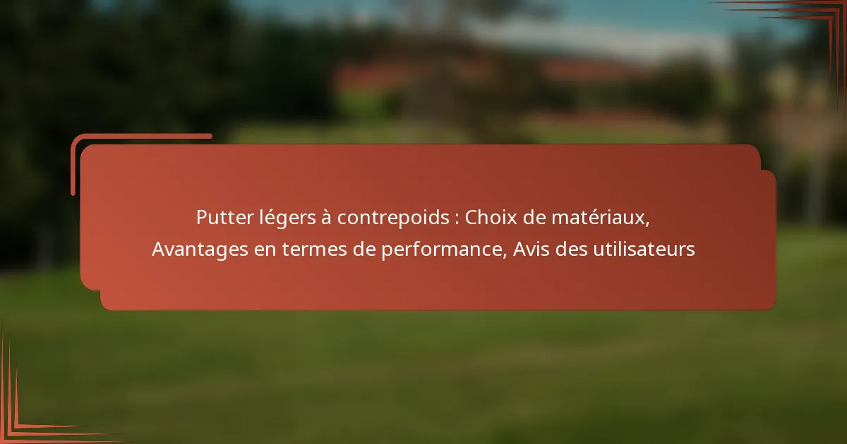 Putter légers à contrepoids : Choix de matériaux, Avantages en termes de performance, Avis des utilisateurs